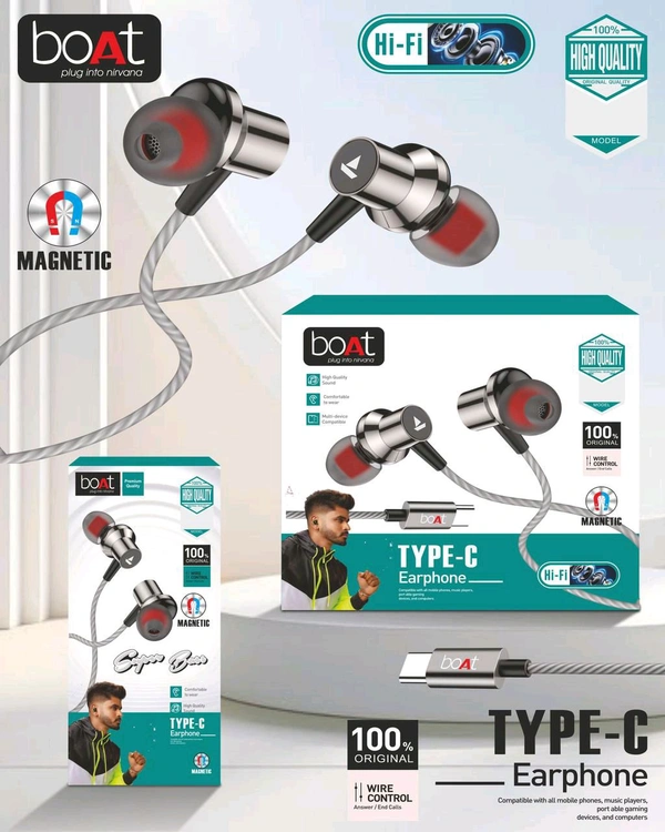 New Boat Hi-Fi Type-C HF Magnetic 🧲 Ear extra bass Sound 10-10 PCs Pecking Earphone